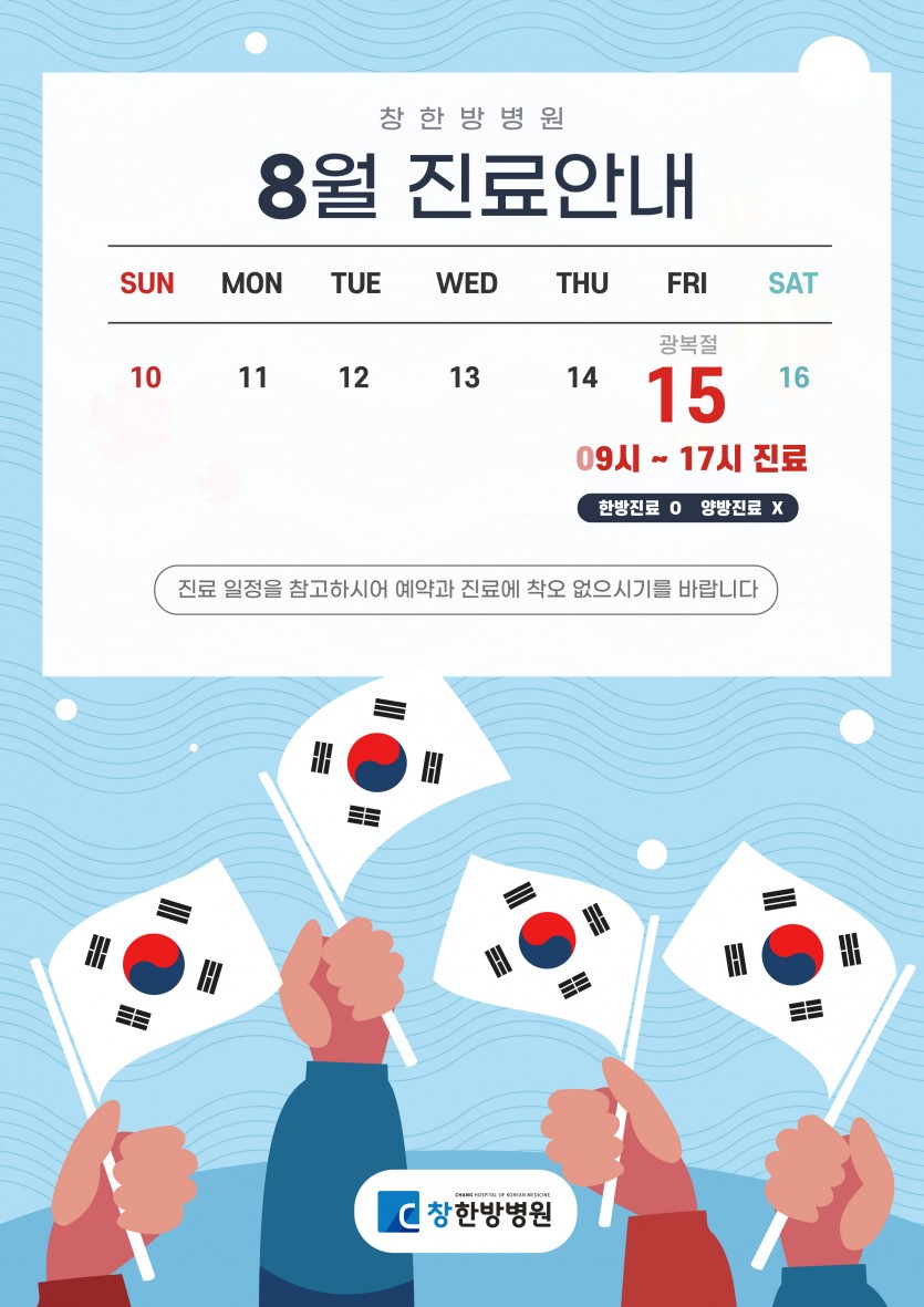 2025년 8월 진료안내 페이지 정보 작성자 창한방병원 조회 914회 작성일 25-07-31 14:36 목록 본문 내용 참고하시어 불편함이 없으시기 바랍니다 감사합니다 이전글2025년 9월 암환우 복지프로그램 25.09.01 다음글2025년 8월 암환우 복지프로그램 25.07.31