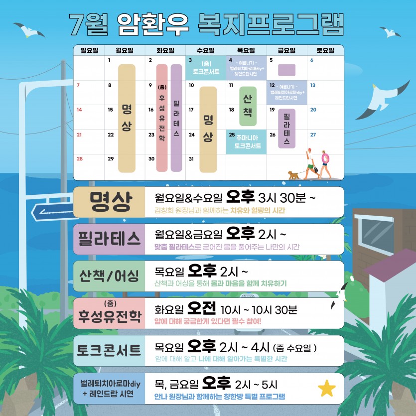 2024년 07월 암환우 복지 프로그램 페이지 정보 작성자 창한방병원 조회 1,809회 작성일 24-07-01 10:34 목록 본문 일정 참고하시어 착오 없으시기 바랍니다 감사합니다! 언제나 환우분들께 최선을 다하는 창한방병원이 되도록 하겠습니다 이전글대구 창한방병원에서 첩약(한약) 건강보험이 적용됩니다 24.07.08 다음글2024년 07월 주마니아 토크콘서트 안내 24.07.01